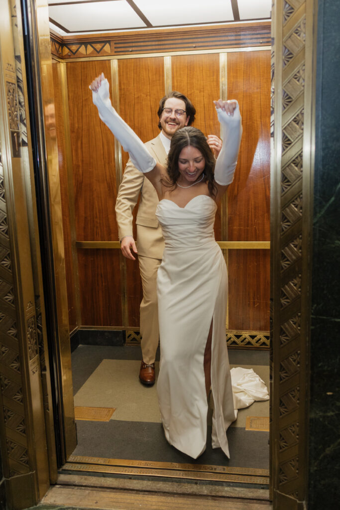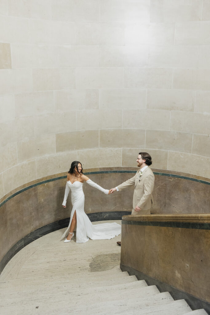 Michael and Victoria first tied the knot during a Buffalo City Hall elopement, choosing to share the moment with only their closest family members. Buffalo City Hall is one of the most iconic elopement locations in Western New York, and its art deco architecture made the perfect backdrop for timeless, romantic portraits.