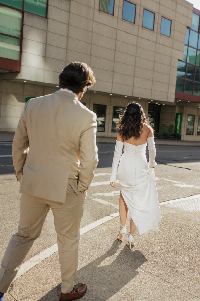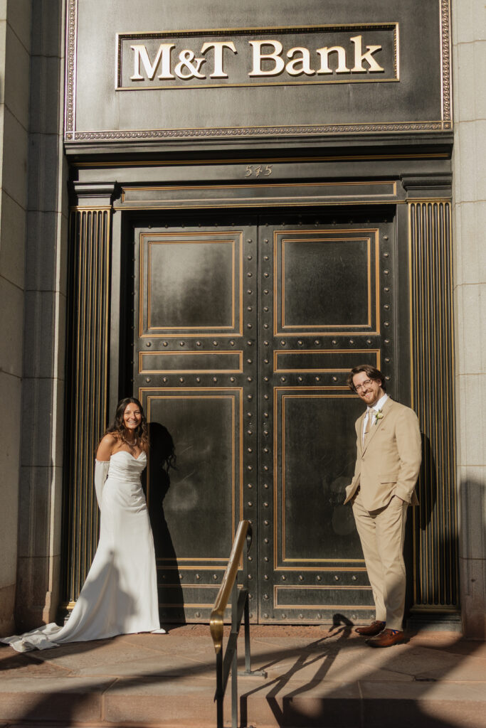 After their ceremony, we explored downtown Buffalo for portraits, capturing the excitement, joy, and quiet moments that made the day feel so personal. The city streets, architecture, and energy gave their elopement photos a classic Buffalo feel while still keeping the focus on the two of them.