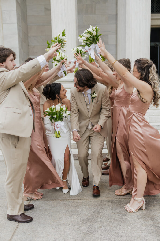 They began the day with getting ready portraits, then we headed to the Buffalo History Museum, where they shared portraits with their bridal party and took advantage of the museum’s beautiful architecture for classic group and couple photos.